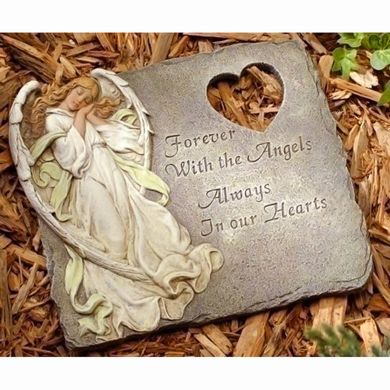 10.25 x 10.25 inch garden stepping stone with a peaceful garden angel relief and cut-out heart.