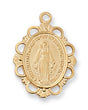 18kt Gold plate over solid sterling silver medal measures 3/4 of an inch long with a lovely scalloped edge. Comes on a 18 inch curb chain with spring clasp is gold plated.