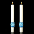 This set of 2 candles are decorated with high quality, rich gold and blue sculpted wax reliefs with Miraculous Medal and roses to match the Most Holy Rosary eximious Paschal candle. These attractive altar candles enhance the presence of the Paschal candle or add to the beauty of your sanctuary for any liturgy.