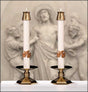 This set of 2 candles are decorated with high quality, rich gold, sculpted wax reliefs of angels to match the Mt Olivet Paschal candle. These attractive altar candles enhance the presence of the Paschal candle or add to the beauty of your sanctuary for any liturgy.