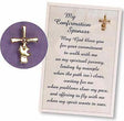 Handsome gold tone lapel pin, with a cross and dove, comes on a 3.75 x 5.5 inch gift card that is cellophane bagged.