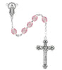 Deluxe silver oxidized Crucifix and Marian center combined with rose colored fire polished glass beads.