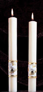 This set of 2 candles are decorated with high quality, rich gold decals with white sculpted wax reliefs of the Lamb of God. These attractive altar candles enhance the presence of the Paschal candle or add to the beauty of your sanctuary for any liturgy.