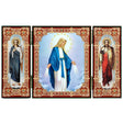 Our Lady of Grace Icon Triptych With Archangels Michael and Gabriel with Gold Foil on Wood.
