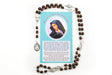 The devotion of the Seven Sorrows of Mary† dates back to the Middle Ages but has gained new popularity following the Church-approved Marian apparitions in Kibeho, Rwanda in the 1980s. Our Lady of Kibeho recommended that people pray the chaplet of the Seven Sorrows to obtain the favor of repentance. This chaplet consists of seven groups of seven oval brown wood beads with each group separated by a silver oxidized medal of Our Lady of Sorrows on one side and a depiction of each of her seven sorrows on the back to assist with the different meditations. Includes prayer instructions in both English and Spanish.