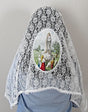 You choice of any one of 4 images of our Lady is put on the back in a lace frame. The copyrighted image is made on a very soft silk type of material. Choose from: