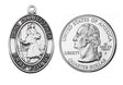 Oval sterling silver medal measures 1-1/16 inches in length.