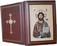 Leather Book of the Gospel Cover with tapestry icon of Christ the Pantocrator, (Christ the Teacher).