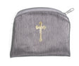 Pewter grey colored "Raw Silk Look" rosary case with zipper closure.