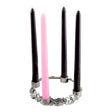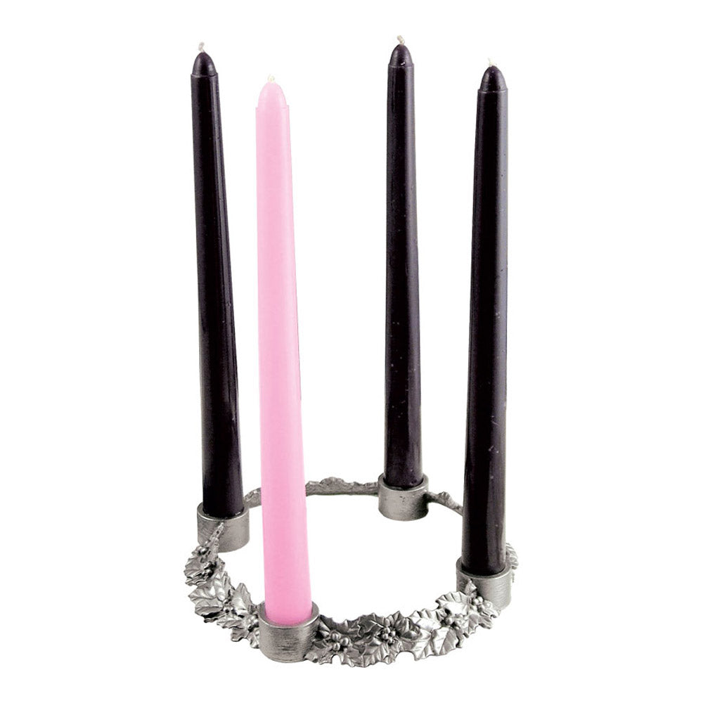 7 inch diameter, hand-polished, bright-finish holly and ivy pewter Advent wreath.