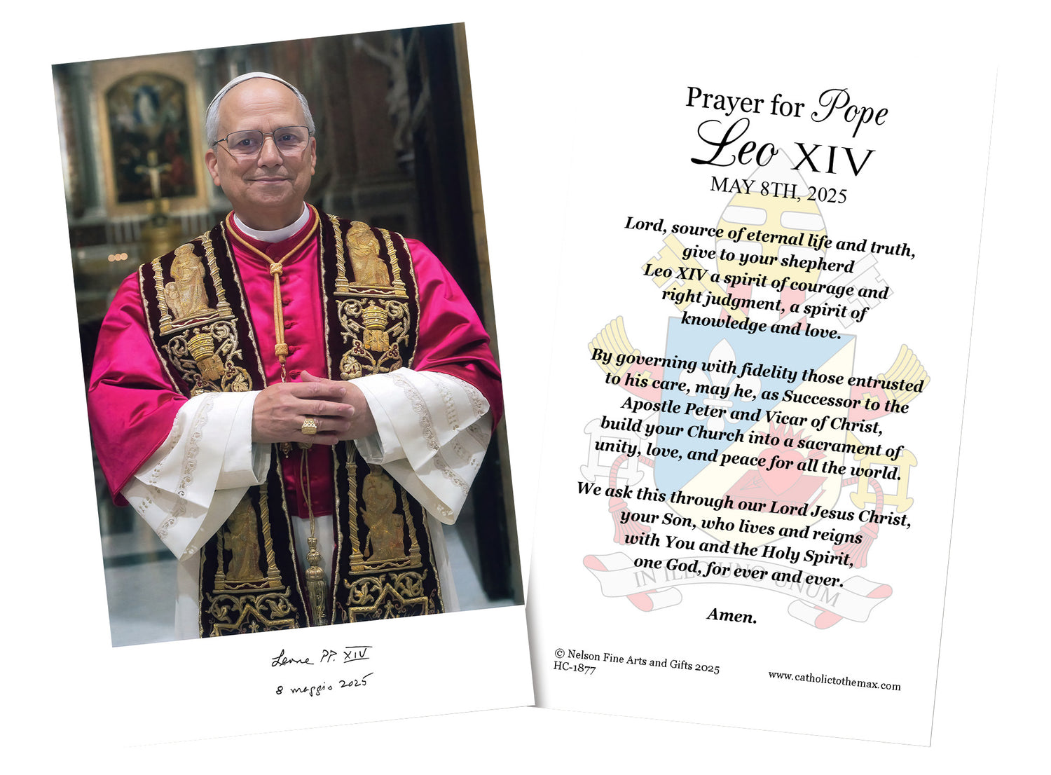 Celebrate Pope Leo XIV with this beautiful holy card! The 2.5"x4.25" holy card features an image Pope Leo XIV on the front, and a prayer on the back.