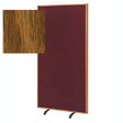 Privacy Screen Shown in Golden Oak finish with Maroon fabric. (See Furniture Finish Swatch imbedded in image for Amber Wood Color).