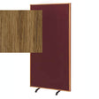 Privacy Screen Shown in Golden Oak finish with Maroon fabric. (See Furniture Finish Swatch imbedded in image for Pecan Wood Color).