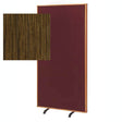 Privacy Screen Shown in Golden Oak finish with Maroon fabric. (See Furniture Finish Swatch imbedded in image for Walnut Wood Color).