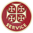 Service Jerusalem Cross gold plated with red enamel lapel pin.