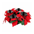 A Pretty Grapevine Wreath Surrounded by a Black Metal Circular Candle Holder And Embellished With Red Poinsettias.. Size 3.75 In H X 12.0 In W X 12.0 In D.