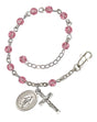 Rose Crystal Adjustable Rosary Bracelet Silver Plate