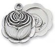 A dainty Sterling Silver "slider" medal. The rose-shaped covers slip to one side to reveal the Miraculous medal within.