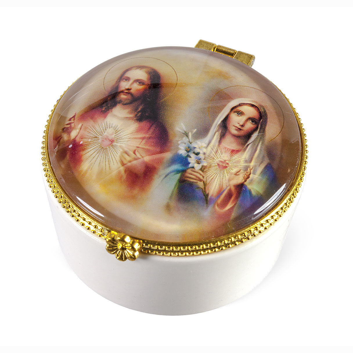 The Sacred Heart of Jesus and the Immaculate Heart of Mary Porcelain Rosary keepsake box.