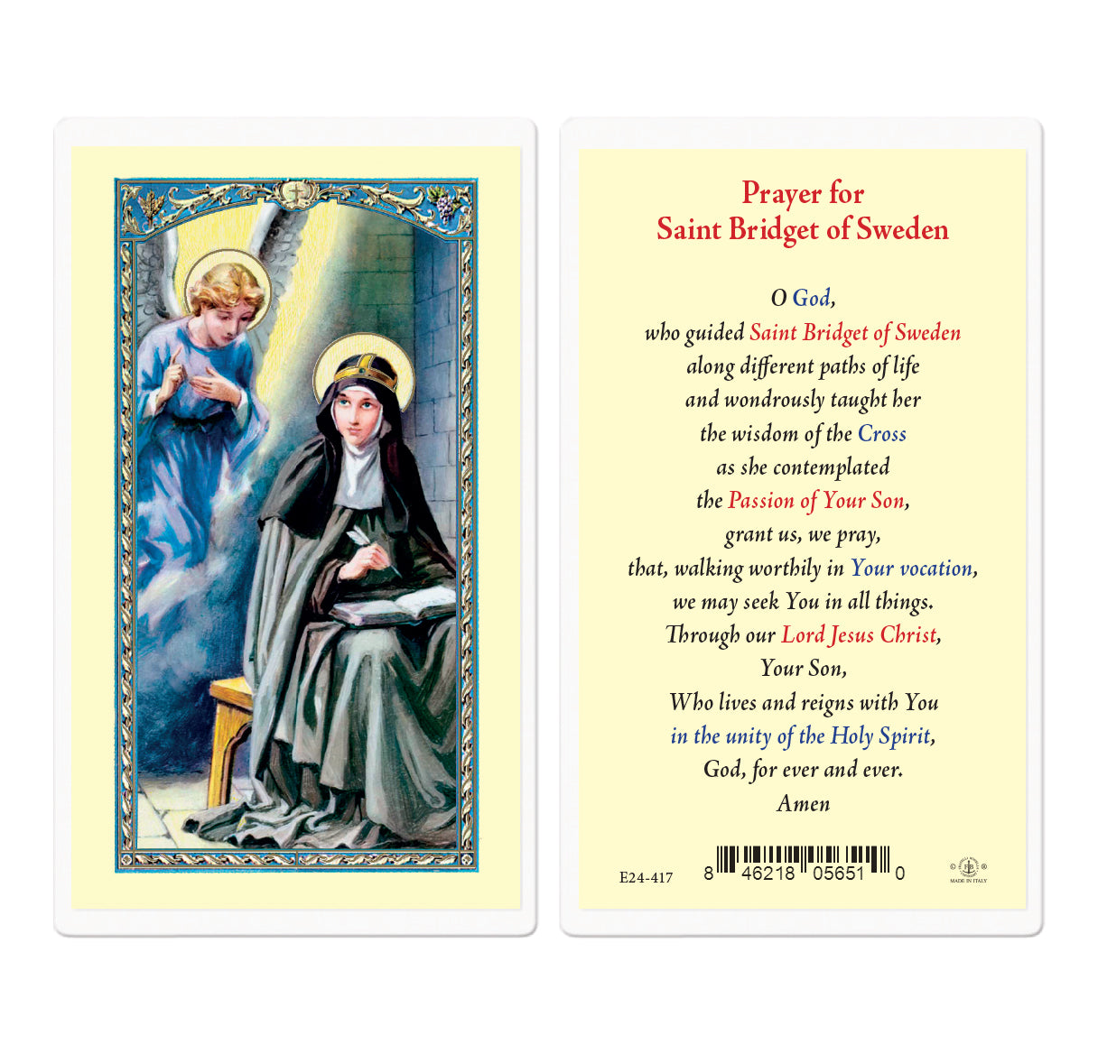 She is the patron of patron saint of Sweden, founder of the Bridgittines and mystic.