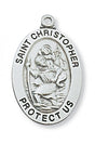 This larger Saint Chris medal is a great size for men. The sterling silver cast oval medal measures 1-1/8 of an inch long and 1-1/16 of an inch across. The medal comes on a sturdy 24 inch stainless steel chain.