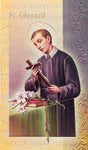 Folded prayer card features gold stamped Italian art from Bonella Studios.