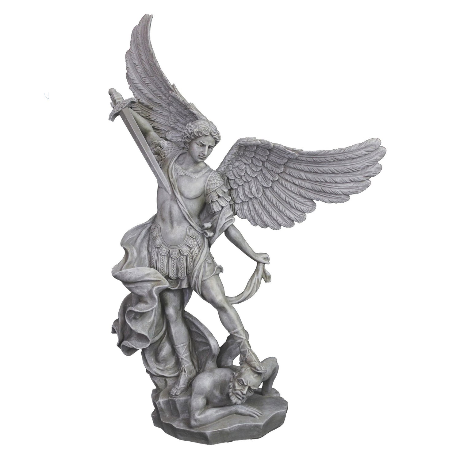 Handsome statue of St Michael the Archangel in a rugged and manly, stone finish.