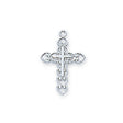Open design of scrolling hearts cross with solid cross above made in Sterling Silver with bright rhodium finish.