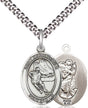 Pewter St. Christopher/Hockey oval medal measures 3/4 x 1/2 inch.