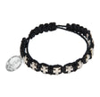 10 Silver oxidized Maltese Cross beads with black knotted cord that adjusts to fit most wrists.This inspirational bracelet has an oval St. Joseph Medal that reads: