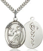 1 x 3/4 inch (quarter size) Oval Sterling Silver St. Luke Medal for Doctors on 24 inch Stainless chain. The back of this medal is cast with the symbol for physicians.