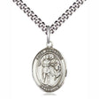 Medal Measures 3/4-inch tall by 1/2-inch wide. Oval Sterling Silver St. Sebastian Medal. Chain is 20 Inches in length Light Rhodium Heavy Curb Chain with Lobster Claw Clasp.