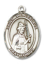 7/8 inch Oval Sterling Silver St. Wenceslaus Medal on an 18 inch Stainless Chain. Velvet Boxed.