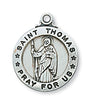Sterling Silver medal of St Thomas the Apostle on 20 inch rhodium plated, steel curb chain.