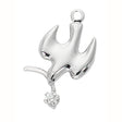 Petite Sterling silver Dove of the Holy Spirit carries a flower stem with cubic zirconia crystal.