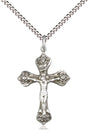 Sterling Silver Fancy Rose Crucifix Pendant 0662SS