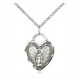 Sterling Silver Miraculous Heart Pendant on a 18 inch Light Rhodium Curb Chain.