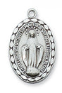 Sterling Silver Miraculous Medal with beaded edge, on rhodium finish stainless steel chain.