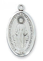 Traditional sterling silver Miraculous medal measures 1 inch in length.