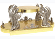 Gold plated with 4 antiqued, silver plated angels that kneel on the 23-1/2 inch wide base.
