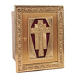 With ornate Bas-relief door & frame around an ornate cross with baked red enameled background, this high polish bronze tabernacle safe is both beautiful and secure.