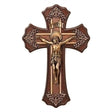 10.25 inches tallVictorian Style Crucifix in Oak and Antique Gold Finish made by Joseph Studio of resin/stone mix. 10.25 x 6.75 inches in size. Manf. production no. 42520.