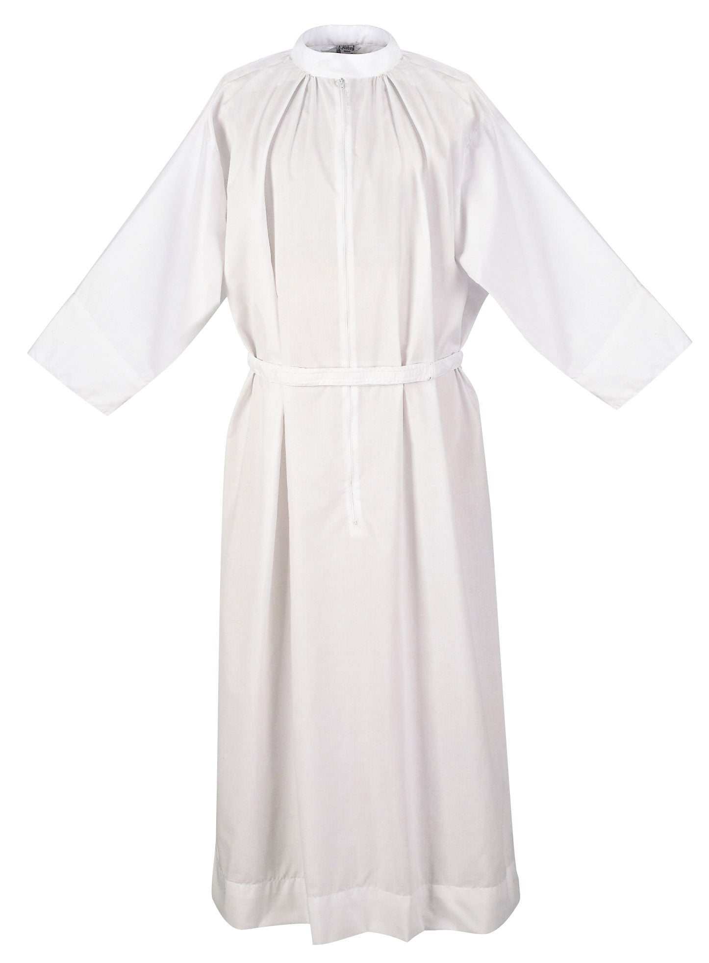 White Zip Front Alb in Poly/Cotton Blend no. 425